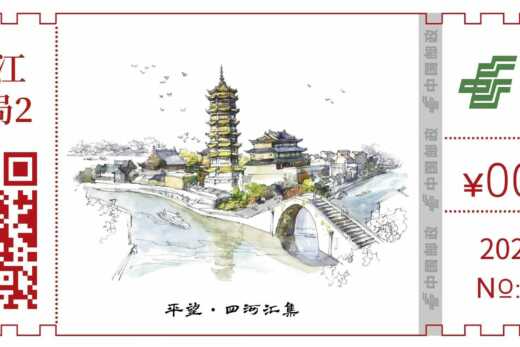 [中国]2021自助彩色邮资机签条TS71[74]平望•四河汇集