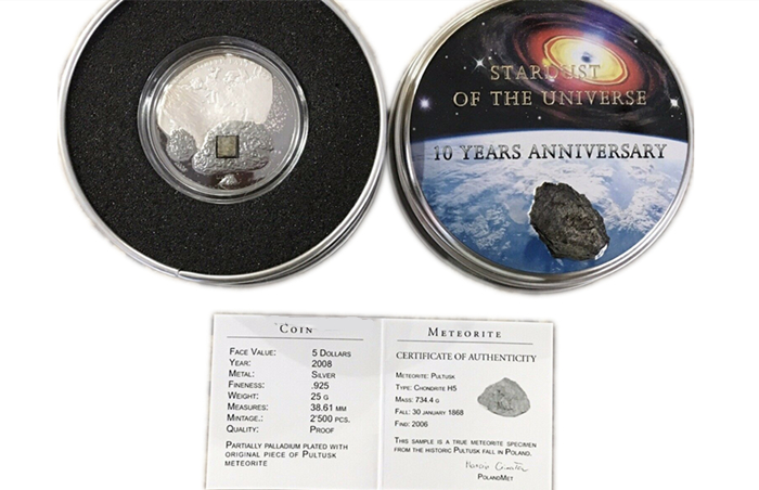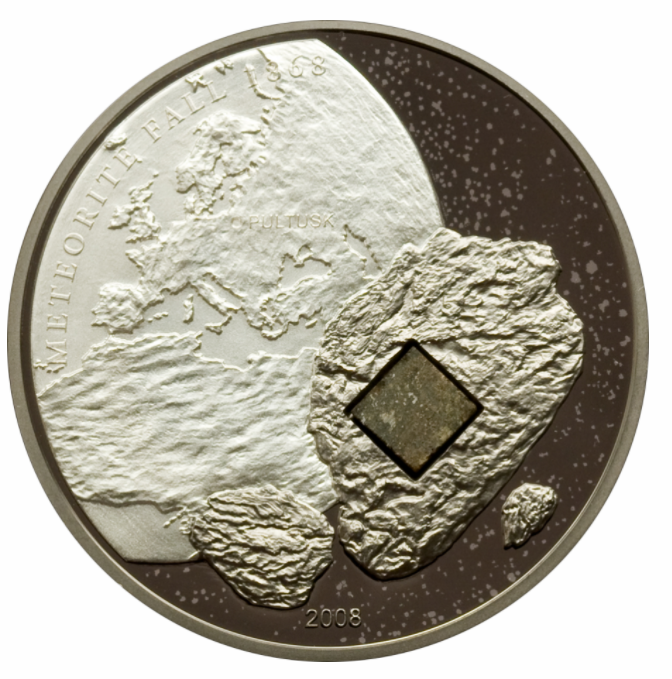 [库克]陨石系列(4)2008波兰普图斯克陨石银币(Pultusk Meteorite) 2021-03-18 0 随心 外国钱币系列 钱币 2008陨石系列(4)波兰普图斯克陨石银币(Pultusk Meteorite) 陨石币 发行国家库克 发行年份2008 系列 陨石系列 编号4 材质925银 重量25g 尺寸38.61 mm 发行量2500