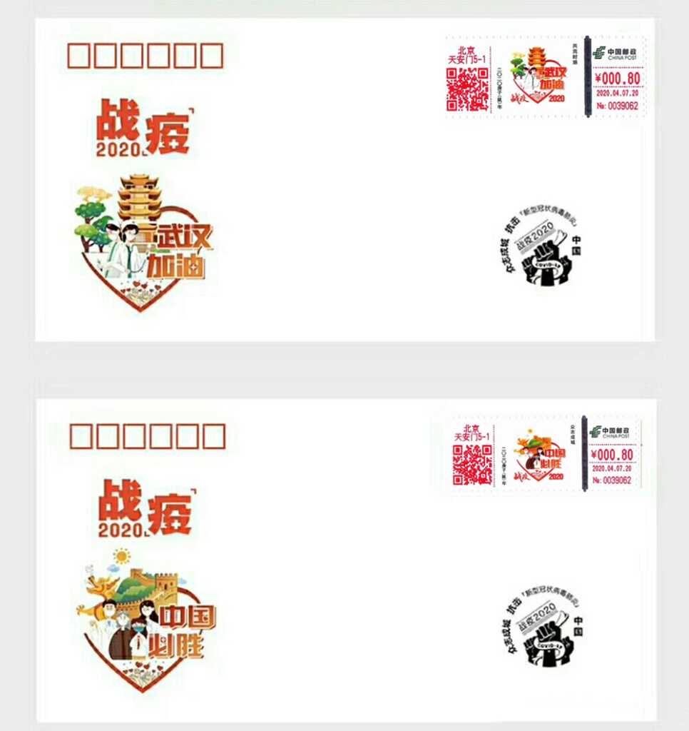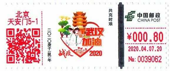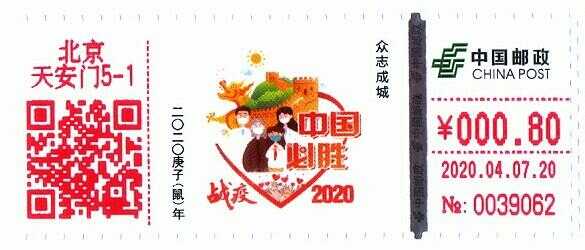 [中国]2020自助彩色邮资机签条TS71[2]战疫2020 2021-04-26 0 随心 自助彩色邮资机签条(TS71) 集邮品 [中国]2020自助彩色邮资机签条[2]战疫2020 签条2/北京天安门战疫2020图案:(2-1)共克时艰/(2-2)众志成城发行日期:2020年4月7号设计师:签条金额:0.8/1.2机型:TS71