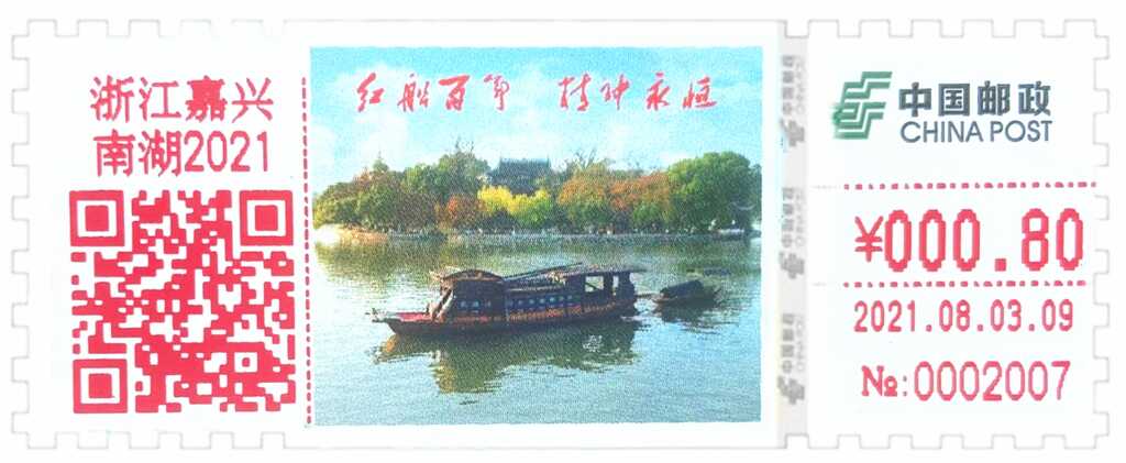 [中国]2021自助彩色邮资机签条TS71[37]浙江嘉兴“百年红船 精神永恒” 2021-08-07 0 随心 自助彩色邮资机签条(TS71) 集邮品 [中国]2021自助彩色邮资机签条[37]浙江嘉兴“百年红船 精神永恒” 签条37/浙江嘉兴浙江嘉兴“百年红船 精神永恒”签条:0.8/1.2/3.8/4.22021年8月3日