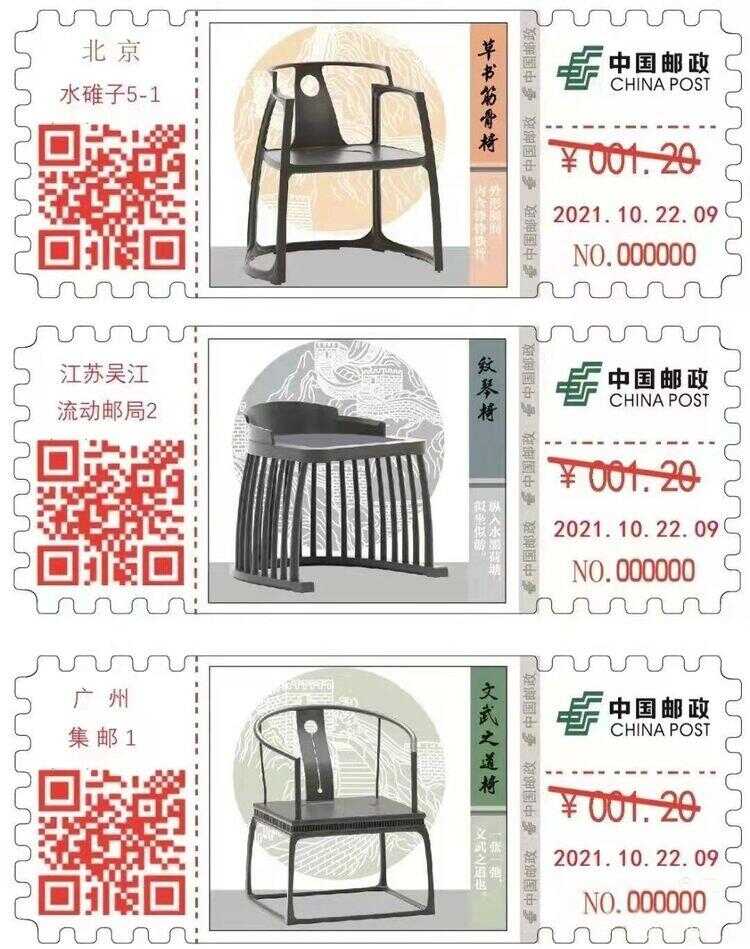 [中国]2021自助彩色邮资机签条TS71[67]北京、江苏、广州三地联发“家具” 2021-11-21 0 随心 自助彩色邮资机签条(TS71) 集邮品 签条67:北京江苏广州家具-坐具金额:0.8/1.2/3/4.2首日:2021年10月22