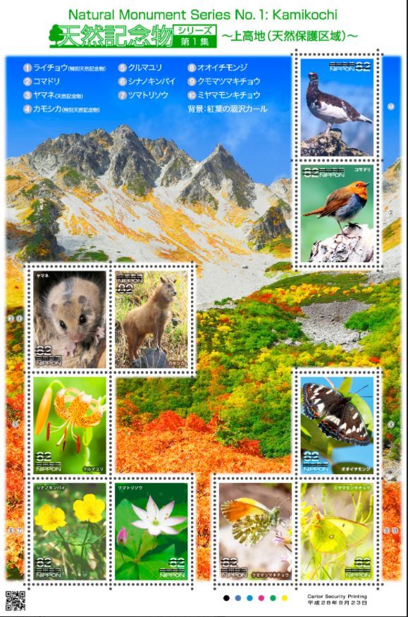 [日本]2016天然纪念物系列(1)上高地邮票 2021-03-20 0 随心 外国邮票 邮票 2016天然纪念物(1)上高地 日本邮票 发行国家日本 发行量1200w 发行首日2016年9月23号 发行年份2010-2019年 2016年 系列 [日本]天然纪念物系列邮票 编号1 规格