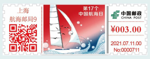 自助彩色邮资机签条(TS71) 集邮品 [中国]2021自助彩色邮资机签条TS71[30]第17个中国航海日 2021-07-14 0 20212021签条302021邮资签条第17个中国航海日自助彩色邮资机签条